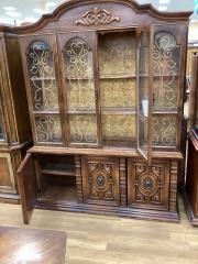 OAK VENEER GLASS DOOR HUTCH W/GOLD STRIP DESIGN