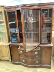 MAHOGONY 1 PIECE VINTAGE STYLE HUTCH W/ CURVED GLASS