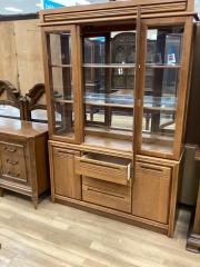 1990'S OAK 2 PIECE HUTCH W/ GLASS SHELVING